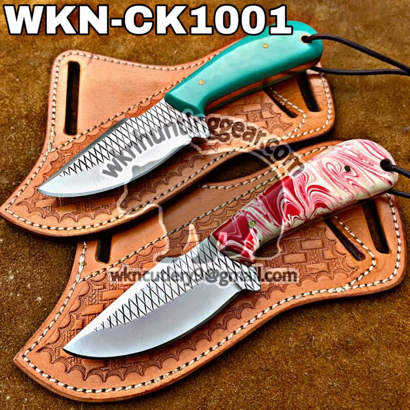 CHRISTMAS BOGO OFFER Custom Handmade 1080 Steel With Powder Coated Fixed Blades Western Cowboy and Skinner knives Set With Custom Initial On The Blades and Sheaths Just Write Your Initial In The Note…