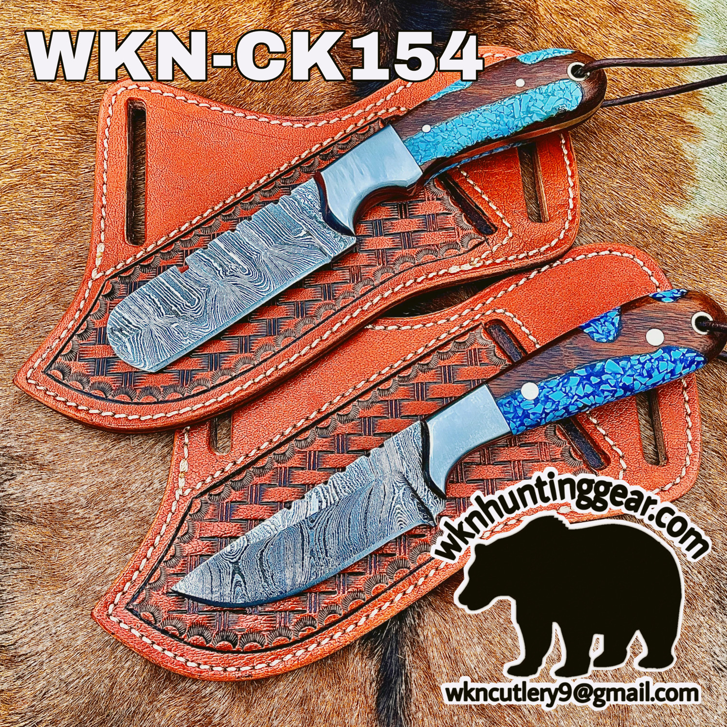 Custom Made Damascus Steel Full Tang Blade Cowboy and Skinner knives set.