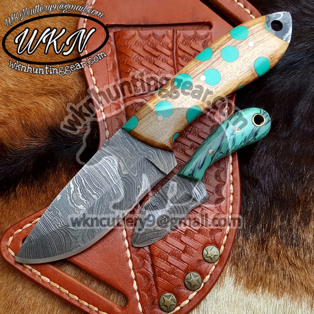 Custom Made Damascus Steel Fixed Blades Cowboy and Skinner knives set…