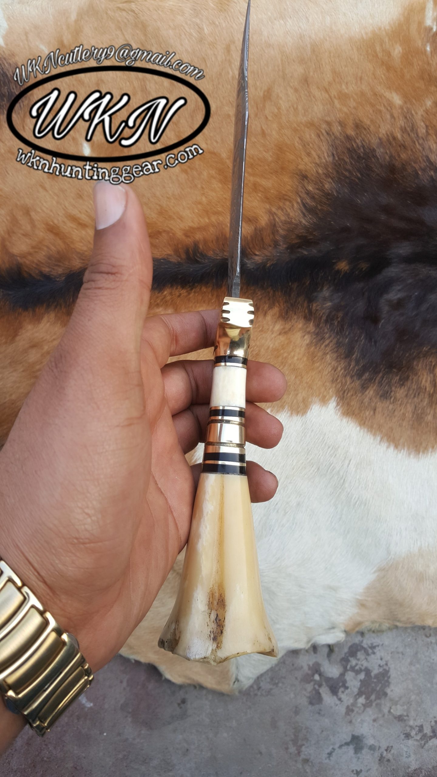 nBest Deer Hunting Knife. Best quality Damascus steel deer hunting knife. This is a multipurpose hunting knife. Handle made with camel bone.