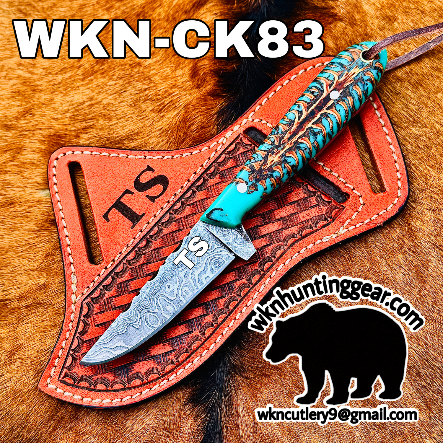 Handmade Cowboy knife Damascus Steel Fixed Blades Western Cowboy Style With Custom initial on the Blade and Sheath…