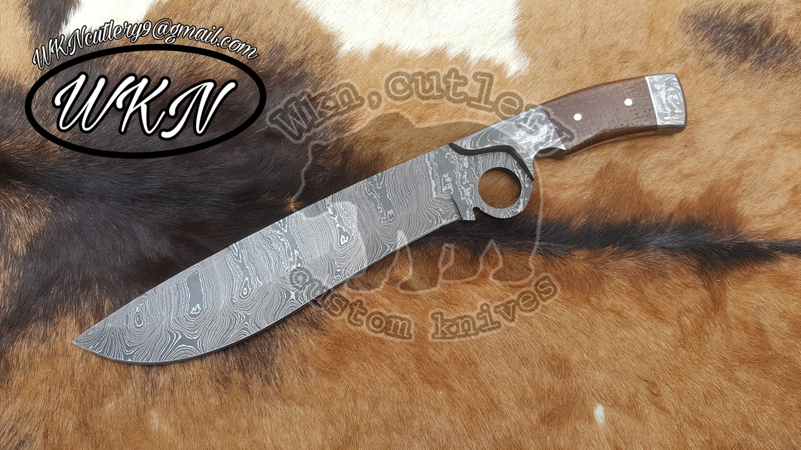nOur Damascus blades are made from high quality non-stainless steels which rival or exceed any Damascus blade made from the 10 series with 15N20. Our Damascus combination has taken years to perfect and has been tested under a variety of application which will offer professional performance in categories of toughness, strength (lateral stress) and edge honing and holding ability. In a 5 spot Rockwell test our blades will average near or close to 58 which offers a perfect balances between its toughness and strength.Our blades due to carbon content need to be regularly treated with wax and/or 3 in 1 oil to maintain its superior quality.