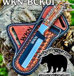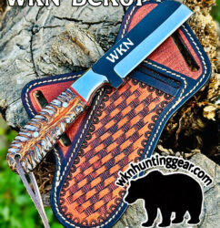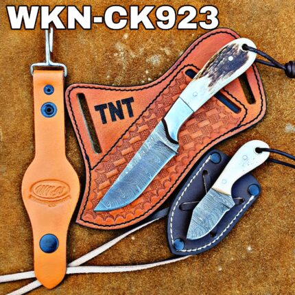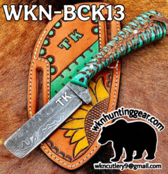 Custom Made Damascus Steel Fixed Blades Western Cowboy and Skinner knives Set With Custom Initial On The Blade and Sheath Just Write Your Initial In The Note… (Copy)