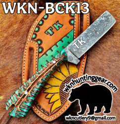 Custom Made Damascus Steel Fixed Blades Western Bull Cutter and Skinner knives set. With Custom Initial On The Blade and Sheath Just Write Your Initial In The Note…