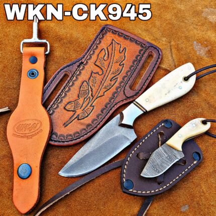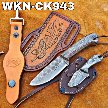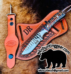 Original price was: $170.00.$104.99Current price is: $104.99.Custom Made 1095 High Carbon Steel Fixed Blades Western Cowboy and Skinner knives Set With Custom Initial On The Blade and Sheath Just Write Your Initial In The Note..
