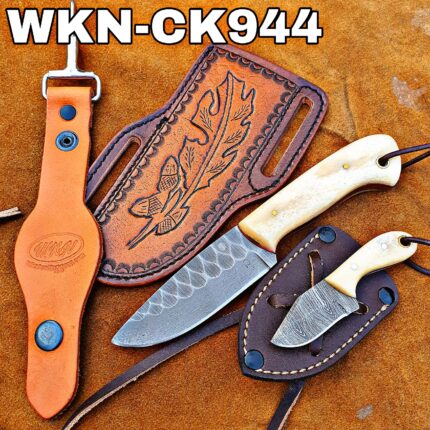 Original price was: $150.00.$84.99Current price is: $84.99.Custom Made 1095 High Carbon Steel Fixed Blades Cowboy and Skinner knives set… With Handmade Leather Sheaths…