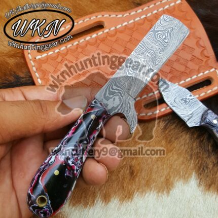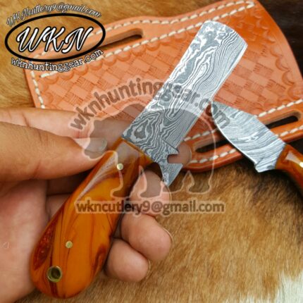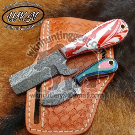 Original price was: $200.00.$129.99Current price is: $129.99.Custom Made Damascus and Rasp Steel Bull Cutter and Skinner knives set…